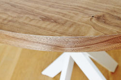Stůl na fotografii je v dekoru: podnož - bílý lak polomat, deska - dýha ořech americký fládr.